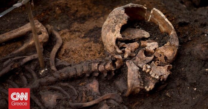 Ένας από τους γυναικείους σκελετούς που χρησιμοποιήθηκαν στη μελέτη. Είχε βρεθεί με τον σκελετό ενός νεογέννητου στην αγκαλιά του