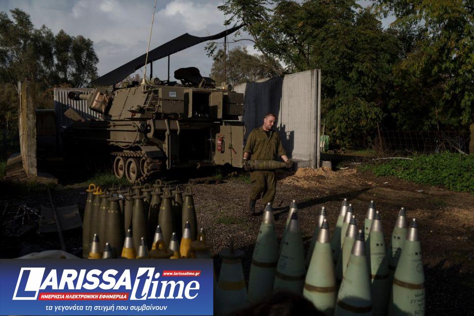 Ισραηλινός στρατιώτης στο βόρειο Ισραήλ μεταφέρει οβίδες κοντά στα σύνορα με τον Λίβανο