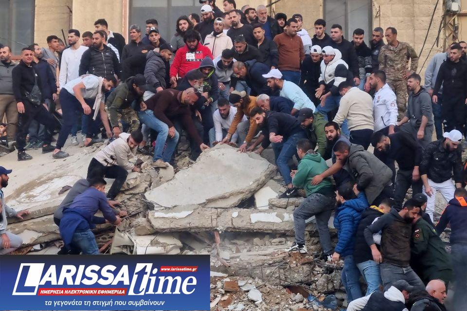 Σωστικά συνεργεία και πολίτες αναζητούν παγιδευμένους στα συντρίμμια κτηρίου που κατέρρευσε στο Λίβανο