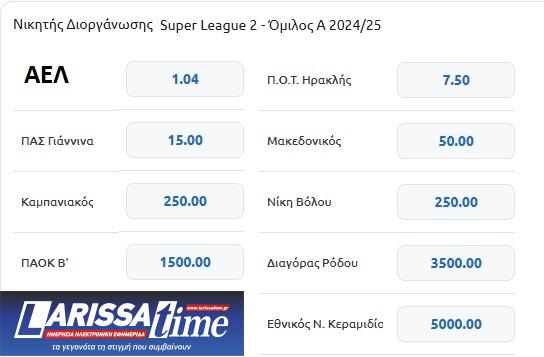 Πόσο δίνει στο στοίχημα να βγει Superleague 1 η ΑΕΛ