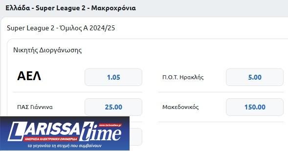 Πόσο δίνει στο στοίχημα να βγει Superleague 1 η ΑΕΛ