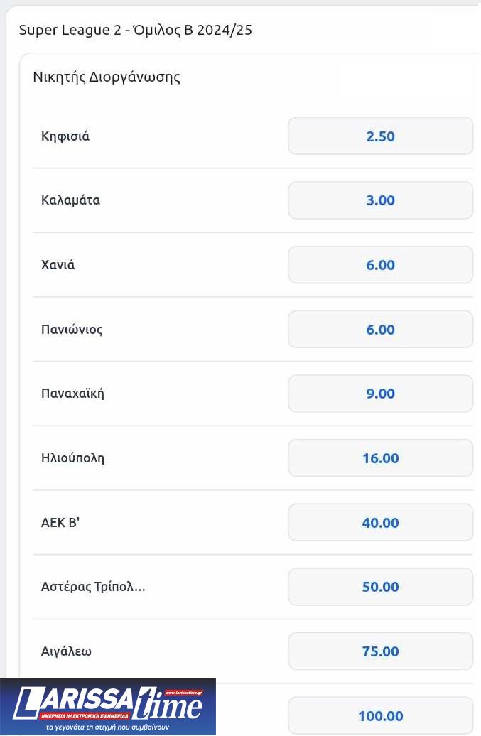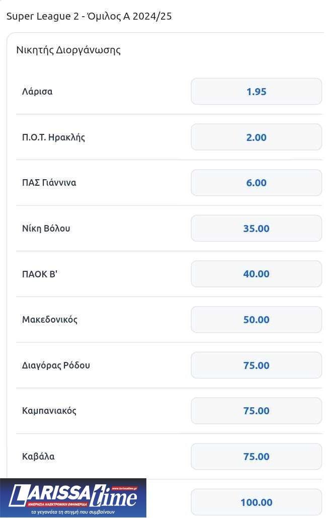 Πόσο δίνει στο στοίχημα να βγει Superleague 1 η ΑΕΛ