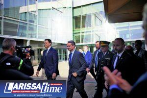 Κυριάκος Μητσοτάκης και Βασίλης Κικίλιας στην εκδήλωση του υπουργείου Κλιματικής Κρίσης και Πολιτικής Προστασίας για το πρόγραμμα ΑΙΓΙΣ.
