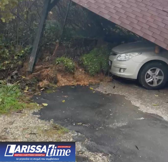 Η συνεχής βροχή στην πόλη της Φλώρινας ήταν η αιτία και κατολίσθησης όγκου χωμάτων από πρανές παρασέρνοντας ένα όχημα μαζί με το κιόσκι που ήταν σταθμευμένο κάτω από αυτό.
