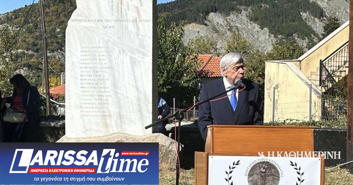 Η μνήμη μου γυρίζει πίσω, στην 2α Νοεμβρίου 2019, όταν ως Πρόεδρος της Δημοκρατίας βρέθηκα για πρώτη φορά μαζί σας προκειμένου ν’ αποτίσουμε τον οφειλόμενο φόρο τιμής στην Ιερή Μνήμη των τραγικών Θυμάτων της θηριωδίας, η οποία συντελέσθηκε εδώ, στην ευρύτερη περιοχή του Καταρράκτη Αρτας, τον Οκτώβριο του 1943. Διευκρινίζω με ειλικρινή συγκίνηση ότι η τιμή που τότε μου περιποιήσατε, όταν με ανακηρύξατε Επίτιμο Δημότη του Δήμου Κεντρικών Τζουμέρκων, έχει πλέον μετατραπεί σε χρέος μου το οποίο θα εκπληρώνω εφ’ όρου ζωής. Επανέρχομαι δε, κατ’ ανάγκη και σε γενικές γραμμές, στα όσα είχα την εποχή εκείνη τονίσει ενώπιόν σας. Υπογραμμίζω κατ’ αρχάς, και πάλι, το γεγονός ότι η Πολιτεία, με την αναγνώριση-καταδίκη της ναζιστικής θηριωδίας στον Καταρράκτη και με την συνακόλουθη ένταξή του στον κατάλογο των Μαρτυρικών Χωριών, με σχετικό Προεδρικό Διάταγμα (ΦΕΚ Α/79/1-06-2017), εξεπλήρωσε ένα στοιχειώδες Χρέος Τιμής όχι μόνον απέναντι στα τραγικά Θύματα και στις Οικογένειές τους, αλλά και απέναντι στην ίδια την Ιστορία του Τόπου μας. Διότι η διατήρηση της Ιστορικής Μνήμης αποτελεί, και δη κυριολεκτικώς, όρο επιβίωσης του Εθνους μας.