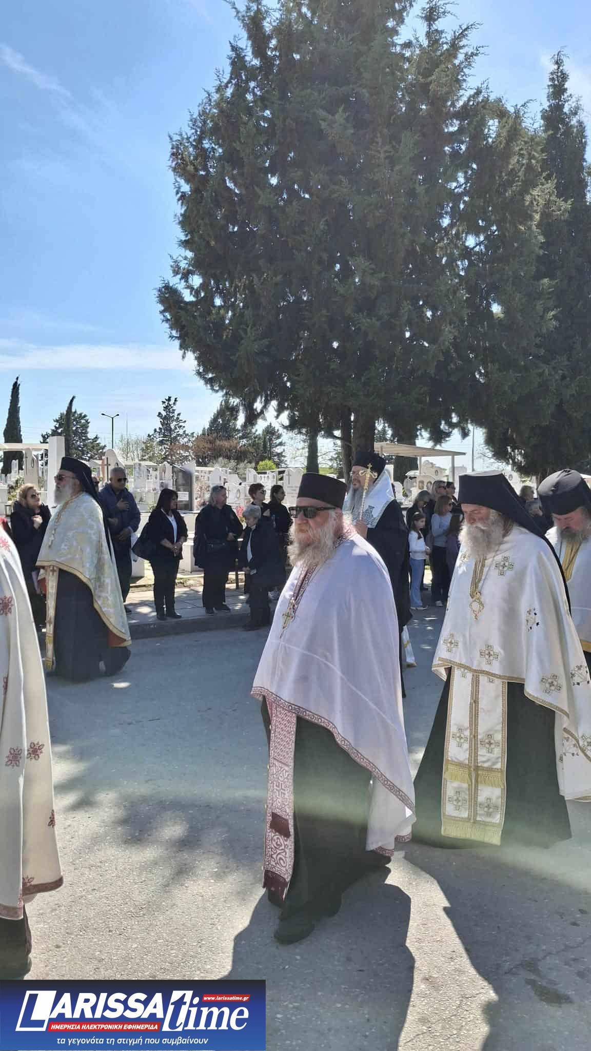Στο εκκλησάκι του Λαζάρου, στο νέο κοιμητήριο Λάρισας, πραγματοποιήθηκε αργά το μεσημέρι της Μεγάλης Παρασκευής η ακολουθία της αποκαθήλωσης και ακολούθως η περιφορά του επιταφίου ανάμεσα στα μνήματα του νεκροταφείου.