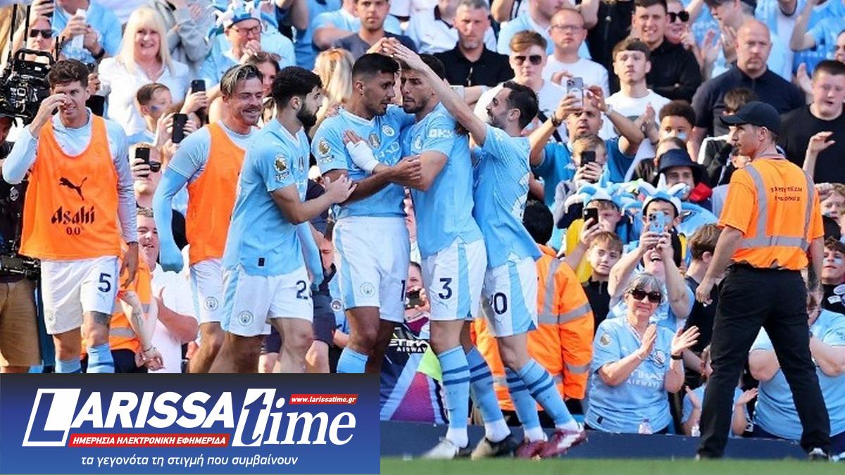 Με το… καλησπέρα στο «Έτιχαντ» η Μάντσεστερ Σίτι άνοιξε το σκορ. Υπέροχη ατομική ενέργεια και αριστερό σουτ του Φιλ Φόντεν και 1-0 μόλις στο 2ο λεπτό, από τον κορυφαίο παίκτη της σεζόν, όπως ψηφίστηκε προ ημερών. Ο ίδιος διεθνής Άγγλος εξτρέμ πέτυχε και το 2-0, στο 18’, από το ύψος του πέναλτι μετά από ωραίο συνδυασμό των Έρλινγκ Χάαλαντ, Ζερεμί Ντουκού. Τα «σφυριά» δεν παράτησαν το ματς και μείωσαν σε 2-1, με ένα απίθανο ψαλιδάκι του Μοχάμεντ Κούντους – υποψήφιο για γκολ της χρονιάς. Ίσως για το (δεύτερο) αντίο του Ντέιβιντ Μόγιες από τον πάγκο της Γουέστ Χαμ. Όχι για πολύ… Πριν συμπληρωθεί μία ώρα παιχνιδιού, ο Ρόντρι από το γύρισμα του Μπερνάρντο Σίλβα νίκησε τον Αλφόνς Αρεολά για το 3-1. Όγδοο γκολ του Ισπανού στο πρωτάθλημα – προσωπικό ρεκόρ – και έναρξη πανηγυρισμών στην μπλε πλευρά του Μάντσεστερ.