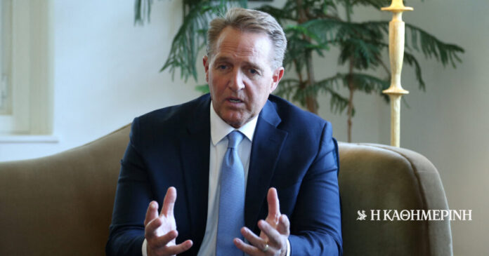 «Εκτιμούμε την Τουρκία, τους συμμάχους μας στο ΝΑΤΟ και την Ελλάδα. Δεν ευνοούμε τον έναν έναντι του άλλου», δήλωσε ο Αμερικανός πρέσβης στην Αγκυρα, Τζεφ Φλέικ, στο πλαίσιο συνέντευξης που παραχώρησε στο δίκτυο CNN Türk, υπογραμμίζοντας μάλιστα ότι η τουρκική πλευρά δεν πρέπει να ανησυχεί για τη «συσσώρευση» δυνάμεων που παρατηρείται το τελευταίο διάστημα στην Αλεξανδρούπολη.