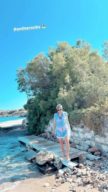 Η διάσημη δημοσιογράφος φαίνεται να εκμεταλλεύεται τις ήσυχες καλοκαιρινές ημέρες για να αποσυρθεί από την πίεση της καθημερινότητας και τις επαγγελματικές της υποχρεώσεις. Στην προσπάθεια αυτή, επέλεξε να ταξιδέψει στην αγαπημένη της Πάρο, όπου κατέχει μια εξοχική κατοικία μαζί με τον σύζυγό της, για να απολαύσει ποιοτικό χρόνο μαζί του και να χαρεί τις τρυφερές στιγμές που προσφέρει το νησί.