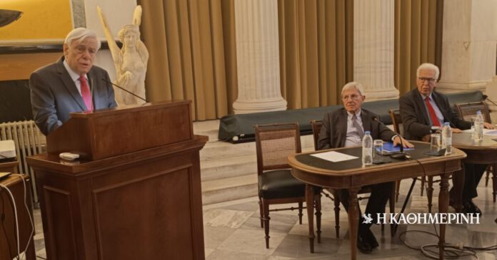 Ο πρώην Πρόεδρος της Δημοκρατίας, Ακαδημαϊκός και Επίτιμος Καθηγητής της Νομικής Σχολής του ΕΚΠΑ κ. Προκόπης Παυλόπουλος μίλησε, με θέμα: «Η καίρια σημασία της Κοινής Εξωτερικής Πολιτικής και της Πολιτικής Ασφάλειας για την εδραίωση της Ευρωπαϊκής Ενοποίησης και της Ευρωπαϊκής Ολοκλήρωσης», στο πλαίσιο Ημερίδας που οργάνωσε η Ακαδημία Αθηνών, με τίτλο: «Διακυβέρνηση: Εθνικές Αναϊεραρχήσεις – Διεθνείς Καταναγκασμοί».