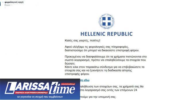 Για ακόμα μια φορά το μήνυμα αφορούσε επιστροφή φόρου και μάλιστα το μήνυμα συνοδεύεται και από το εθνόσημο!