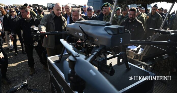 Στην άσκηση, η οποία ολοκληρώθηκε χθες με την Ημέρα Διακεκριμένων Επισκεπτών παρουσία και του υπουργού Εθνικής Αμυνας Νίκου Δένδια, παρουσιάστηκαν –μεταξύ άλλων– UCAV, FPV drones, δηλαδή ο τύπος που έχει επικρατήσει στο ουκρανικό πεδίο μάχης τα τελευταία χρόνια, τα αναλώσιμα περιφερόμενα πυρομαχικά (drones-καμικάζι), που αναπτύχθηκαν για χρήση και εκπαίδευση από τις ελληνικές Ενοπλες Δυνάμεις.