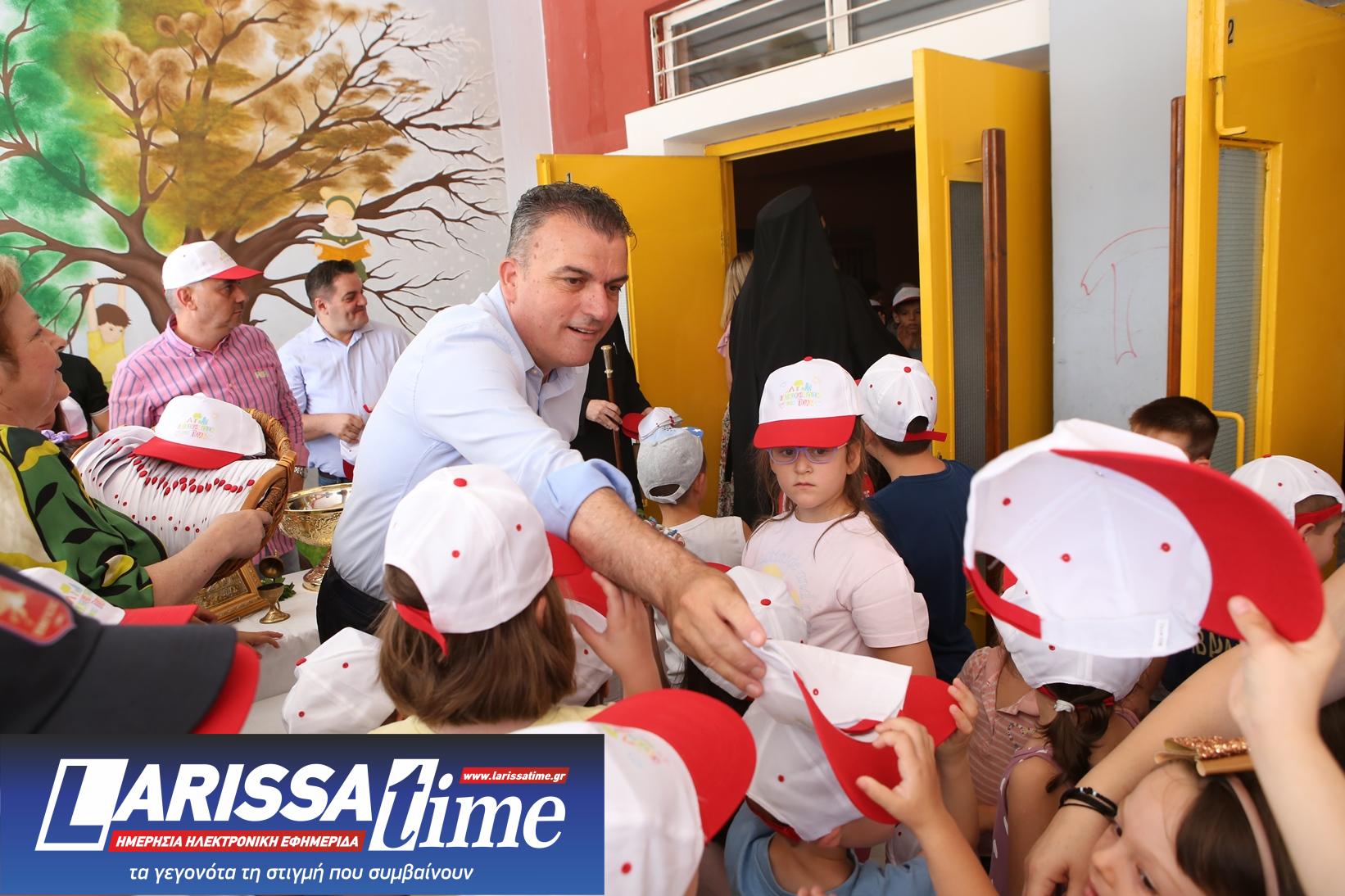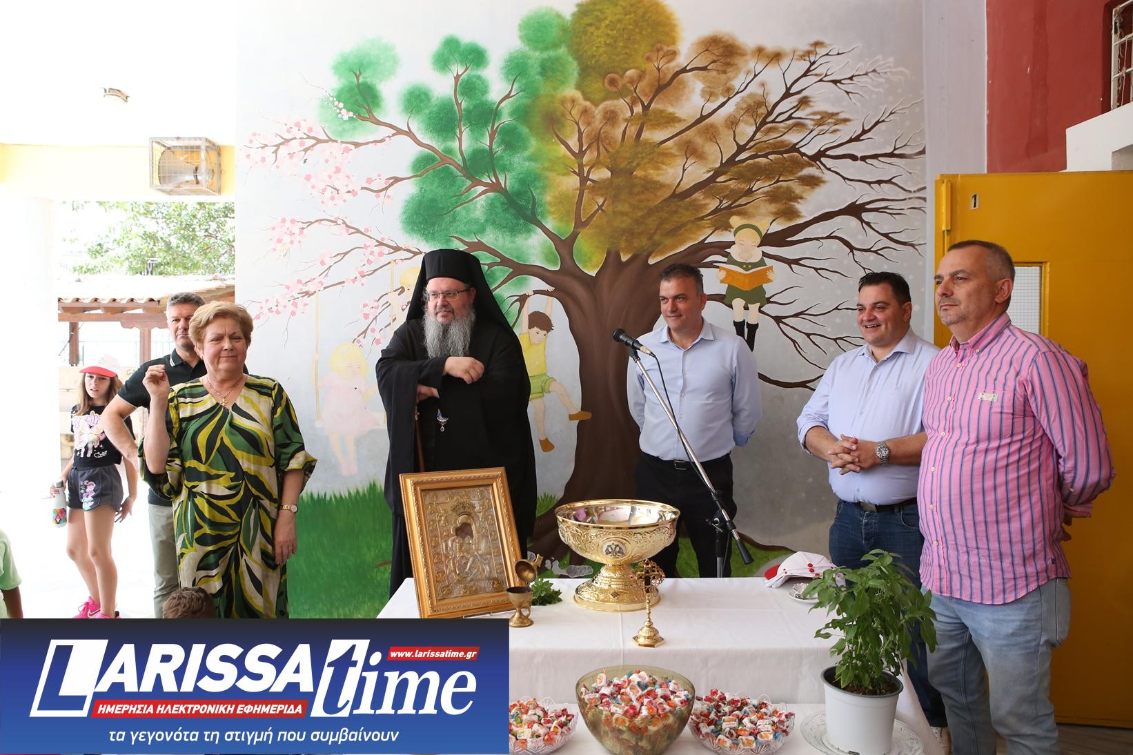 Ο κεντρικός αγιασμός πραγματοποιήθηκε στο 25ο Δημοτικό Σχολείο από τον Σεβασμιώτατο Μητροπολίτη Λαρίσης και Τυρνάβου, κ. Ιερώνυμο, παρουσία του Δημάρχου Λαρισαίων κ. Θανάση Μαμάκου, του Αντιδημάρχου Παιδείας και Άθλησης, κ. Ηρακλή Γερογιώκα, του προέδρου της Σχολικής Επιτροπής Δευτεροβάθμιας Εκπαίδευσης του Δήμου Λαρισαίων, κ. Χρήστου Αγορίτσα, της προϊσταμένης της Διεύθυνσης Παιδείας του Δήμου, κ. Σταυρούλας Μπαξεβάνου, του Διευθυντή του 25ου Δημοτικού Σχολείου Λάρισας, κ. Γιώργου Νάστου, του εκπαιδευτικού προσωπικού της κατασκήνωσης και πλήθους μικρών κατασκηνωτών.