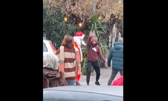 Σύμφωνα με ανακοίνωση του Δήμου Χαλανδρίου, «ο αστυνομικός με κουκούλα και πολιτικά χτύπησε εθελοντή Πολιτικής Προστασίας, που ήταν ντυμένος Άι Βασίλης, και επιτέθηκε φραστικά με ύβρεις και απειλές του τύπου “θα σας κάψω” κατά του αντιδημάρχου Πολιτικής Προστασίας, Χάρη Μαυρουδή, και πολιτών, επειδή του έκαναν παρατήρηση για την παράνομη και επικίνδυνη διέλευση με μηχανή (υπηρεσιακή;) ανάμεσα σε δεκάδες παιδιά και γονείς που διασκέδαζαν στην πλατεία με τις χριστουγεννιάτικες εκδηλώσεις του Δήμου. Λίγα λεπτά μετά την αναίτια και αδιανόητη αυτή επίθεση, βίντεο έχει καταγράψει το δράστη να συνεχίζει να βρίζει και να χαιρετά ναζιστικά».