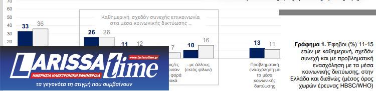 Σύμφωνα με το ΕΠΙΨΥ η Ελλδα είναι από τις χώρες με τα υψηλότερα ποσοστά στην προβληματική χρήση των μέσων κοινωνικής δικτύωσης. Ιδιαίτερα στους 13χρονους και 15χρονους, η Ελλάδα κατατάσσεται διεθνώς 5η και 6η, αντίστοιχα, με τα υψηλότερα ποσοστά προβληματικής ενασχόλησης με τα μέσα κοινωνικής δικτύωσης, λόγω κυρίως του υψηλού ποσοστού που παρατηρείται στα κορίτσια.