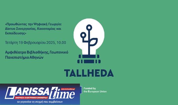 Στο πλαίσιο του ευρωπαϊκού έργου «TALLHEDA: Transforming Access to Excellence with Successful Alliances of Higher Education in Digital Agriculture» θα πραγματοποιηθεί την Τετάρτη 19 Φεβρουαρίου 2025, από τις 10:00 μέχρι τις 15:00 στο Αμφιθέατρο της Βιβλιοθήκης του Γεωπονικό Πανεπιστήμιο Αθηνών μια Υβριδική Ημερίδα με θέμα «Προωθώντας την ψηφιακή γεωργία: δίκτυα συνεργασίας, καινοτομίας και εκπαίδευσης»