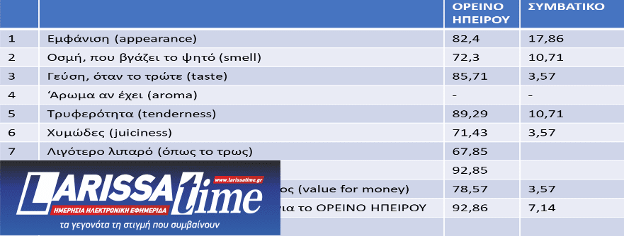 Μάλιστα, οι καταναλωτές φαίνεται να υποδεικνύουν την προτίμηση τους στο επώνυμο κρέας (κατά 92,85%) και είναι διατεθειμένοι να πληρώσουν περισσότερο (κατά 92,86%) για ένα ποιοτικό «Ηπειρωτικό» τρόφιμο αν το βρουν διαθέσιμο στην αγορά.