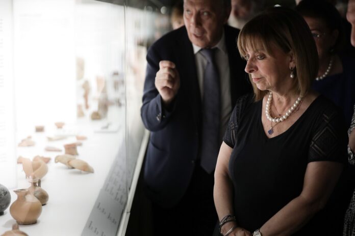 Την έκθεση υπό τον τίτλο το «Μουσείο της Ανασκαφής» του Μουσείου Ακρόπολης εγκαινίασε απόψε η Πρόεδρος της Δημοκρατίας Κατερίνα Σακελλαροπούλου. Η κ. Σακελλαροπούλου εξέφρασε τη χαρά της που εγκαινίασε την έκθεση η οποία περιλαμβάνει ευρήματα από το οικόπεδο Μακρυγιάννη τα οποία όπως τόνισε «μας αποκαλύπτουν έναν κόσμο αινιγματικό, αλλά και παράδοξα οικείο».