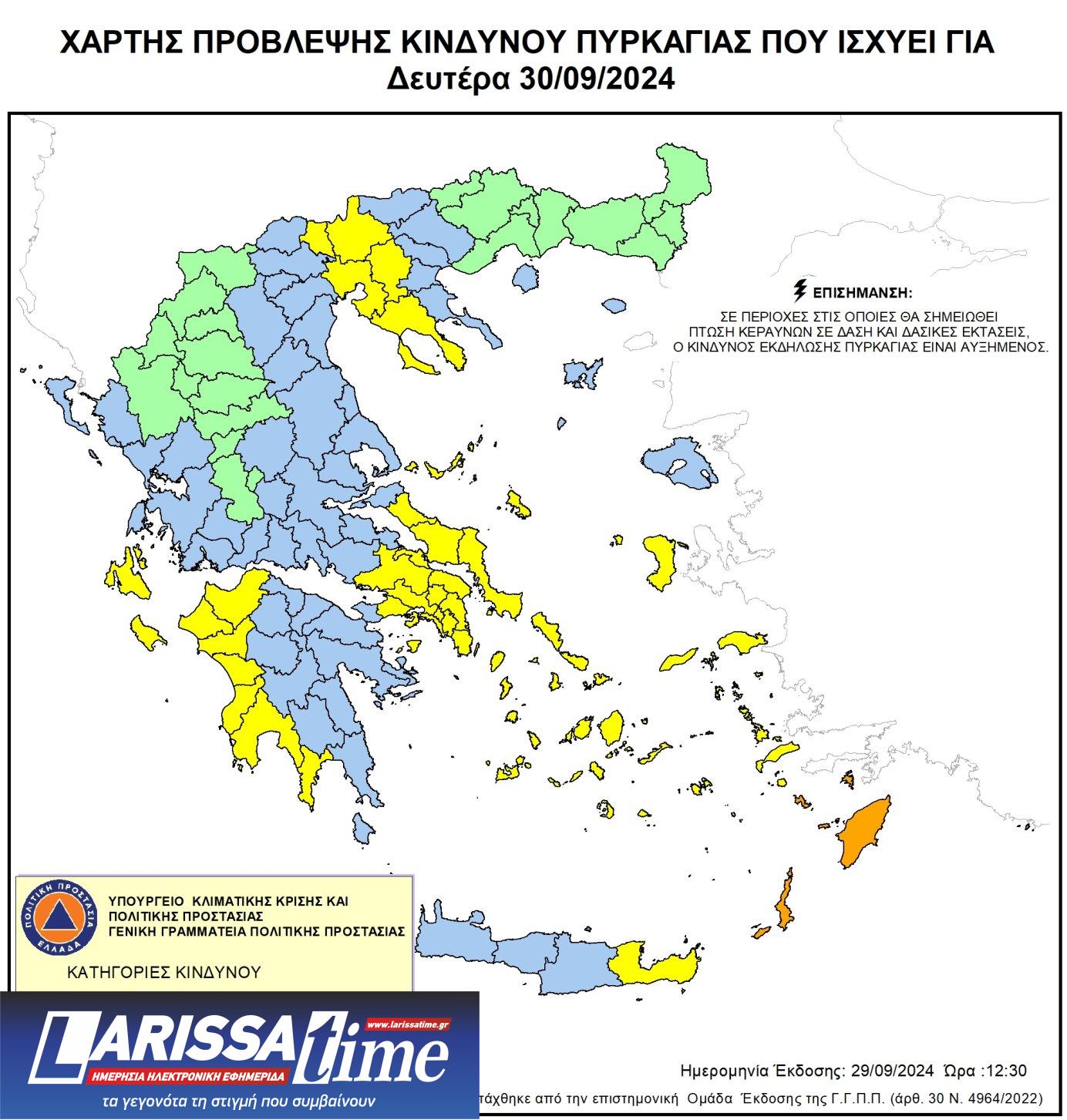 Η Γενική Γραμματεία Πολιτικής Προστασίας (civilprotection.gov.gr) του Υπουργείου Κλιματικής Κρίσης & Πολιτικής Προστασίας έχει ενημερώσει τις αρμόδιες υπηρεσιακά εμπλεκόμενες κρατικές υπηρεσίες, καθώς και τις Περιφέρειες και τους Δήμους των ανωτέρω περιοχών, ώστε να βρίσκονται σε αυξημένη ετοιμότητα πολιτικής προστασίας προκειμένου να αντιμετωπίσουν άμεσα τυχόν επεισόδια πυρκαγιών.