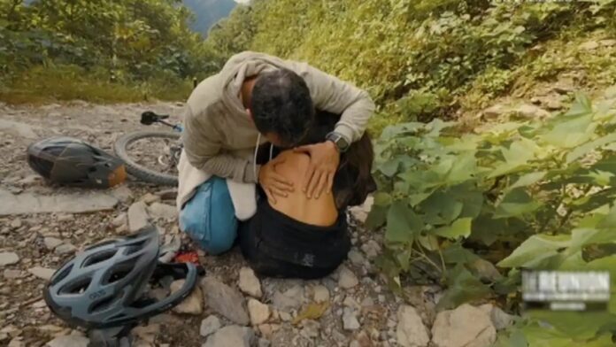 Όπως είδαμε, η Χριστίνα Μπόμπα έχασε την ισορροπία της ενώ η ομάδα της ταξιδιωτικής εκπομπής κινούνταν με ποδήλατα. Η πτώση της ήταν απότομη και άτσαλη, με αποτέλεσμα να προκαλέσει πανικό στους γύρω της. «Ώπα ώπα! Πρόσεξε, πρόσεξε», φώναξε αμέσως ο Γιώργος Μαυρίδης, προσπαθώντας να την προειδοποιήσει.