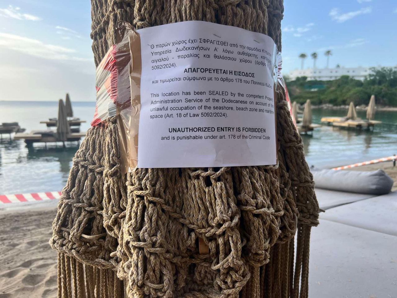 Συντονισμένη επέμβαση του Υπουργείου Εθνικής Οικονομίας και Οικονομικών, της Ελληνικής Αστυνομίας και της ΑΑΔΕ έγινε στις 07:00 το πρωί σήμερα (07/06) στην παραλία της Αγίας Μαρίνας Ρόδου. Η Κτηματική Υπηρεσία Δωδεκανήσων Α’ προχώρησε στην σφράγιση του χώρου όπου εντοπίστηκαν παράνομες κατασκευές με ομπρελοκαθίσματα τόσο στην παραλία όσο και εντός της θάλασσας.