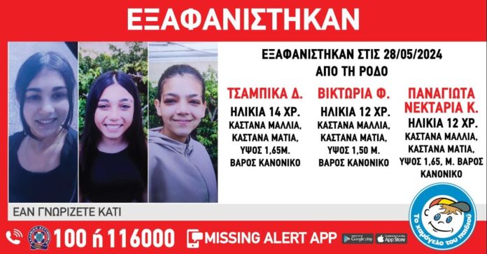 Συναγερμός έχει σημάνει στις Αρχές της Ρόδου, ύστερα από την εξαφάνιση τριών ανήλικων κοριτσιών από τον χώρο φιλοξενίας στον οποίο διέμεναν.