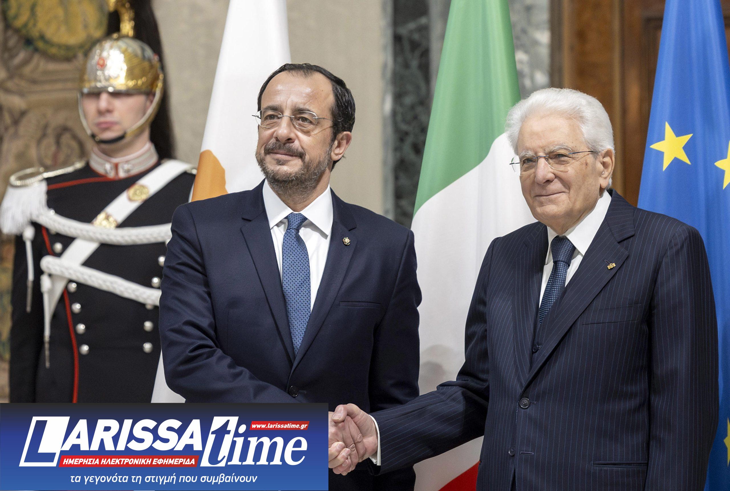 Την έκθεση «Κύπρος και Ιταλία. Κοινές πολιτιστικές ταυτότητες στην αυγή της Ιστορίας», η οποία φιλοξενείται από την Παρασκευή (27/02) στο μουσείο Καστέλ Σαντ Άνζτελο της Αιώνιας Πόλης, εγκαινίασαν ο Κύπριος πρόεδρος Νίκος Χριστοδουλίδης και ο Ιταλός ομόλογός του Σέρτζιο Ματαρέλα.