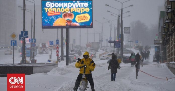 Εικόνες που μεταδίδουν ρωσικά μέσα ενημέρωσης δείχνουν τεράστιους όγκους χιονιού να φθάνουν μέχρι τον δεύτερο όροφο κτιρίων, σε ορισμένα σημεία.