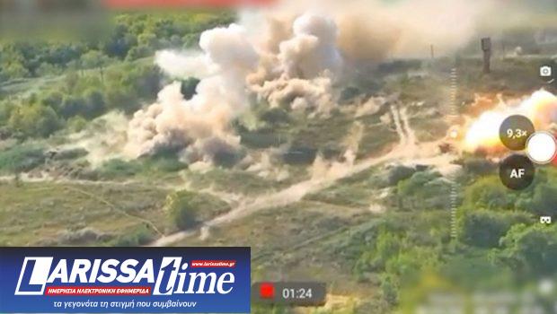 Καπνός υψώνεται από τις εκρήξεις κατά τη διάρκεια ουκρανικής επίθεσης σε ρωσικό φυλάκιο διοίκησης διμοιρίας, στο Glushkovsky, στην περιοχή Κουρσκ. Η εικόνα προέρχεται από βίντεο που κυκλοφόρησε στις 22 Αυγούστου 2024.