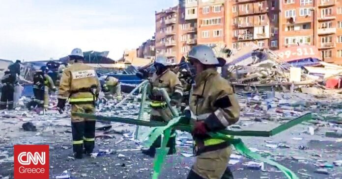Δυνάμεις της πυροσβεστικής να προσπαθούν να κατασβέσουν την πυρκαγιά, σύμφωνα με όσα μετέδωσαν ρωσικά πρακτορεία ειδήσεων.