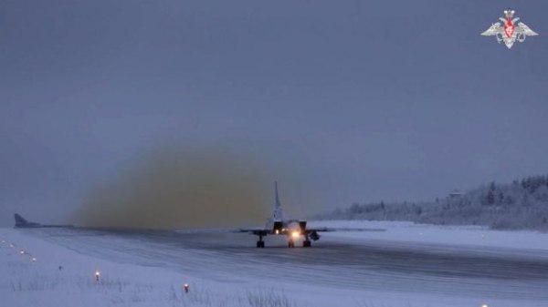 Ρωσικό στρατηγικό βομβαρδιστικό μεγάλης εμβέλειας Tu-22M3 απογειώνεται από αεροδρόμιο σε άγνωστη τοποθεσία για προγραμματισμένη περιπολία πάνω από διεθνή ύδατα της Βαλτικής Θάλασσας