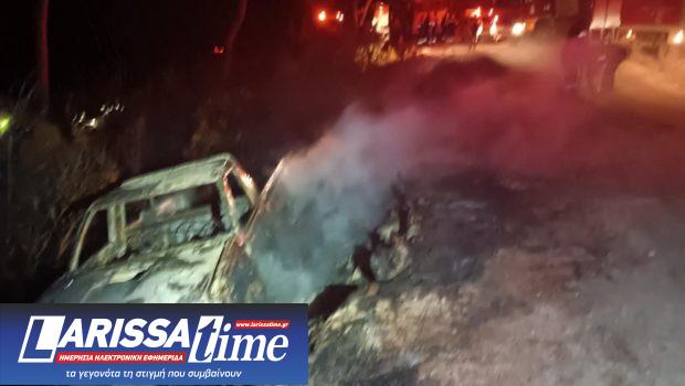 Από την πρόσκρουση το αυτοκίνητο τυλίχθηκε στις φλόγες.