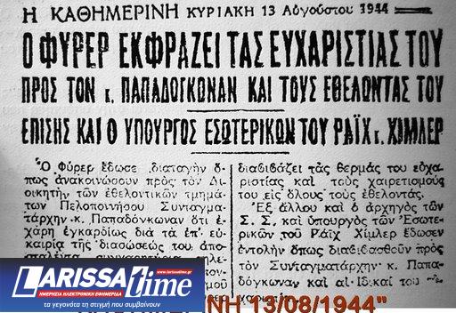Οι ευχαριστίες τoυ «Φύρερ» για το ενδιαφέρον των ταγματασφαλιτών για την επιβίωσή του από την απόπειρα δολοφονίας του με βόμβα.