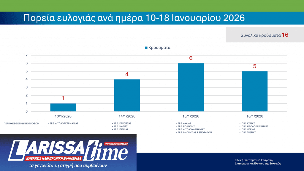 Παράλληλα, για την περίοδο 10–18 Ιανουαρίου 2026, καταγράφηκαν 16 νέα κρούσματα σε 6  περιοχές: