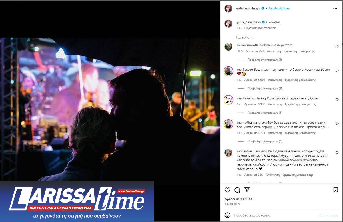 «Σε αγαπώ» ήταν το μήνυμα που έγραψε η σύζυγος του Αλεξέι Ναβάλνι, Γιούλια στα μέσα κοινωνικής δικτύωσης την Κυριακή (18/2), το οποίο συνόδευε με μια φωτογραφία του ζευγαριού.