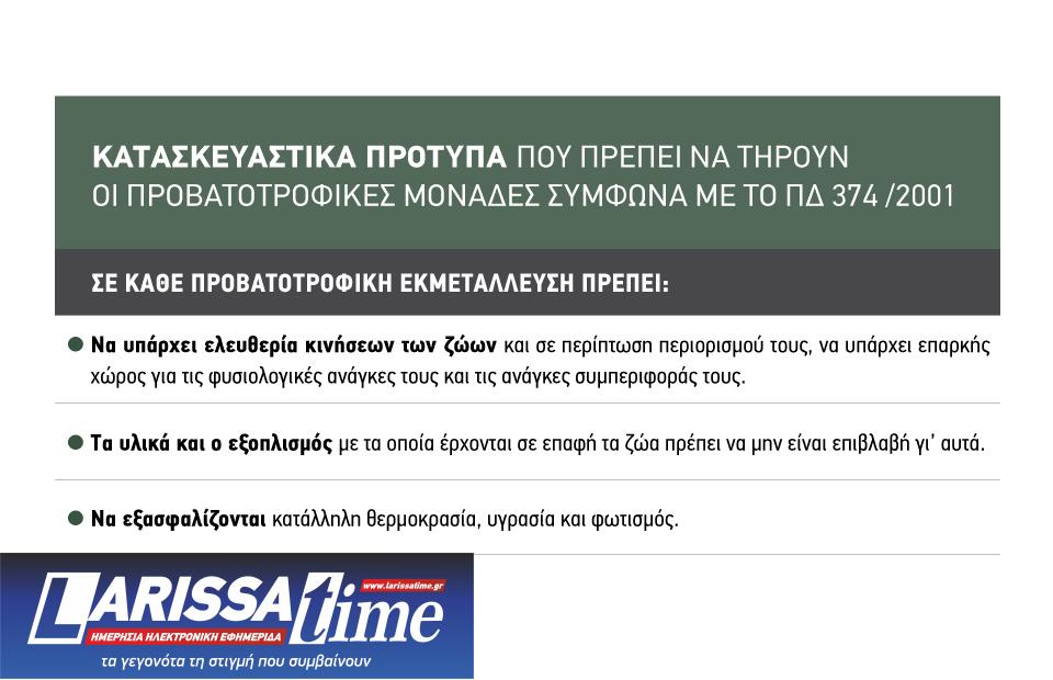 Η καλή διαβίωση των ζώων αφορά τόσο τα κατασκευαστικά στοιχεία των στάβλων των κτηνοτροφικών εγκαταστάσεων όσο και την εκτροφή των ζώων µετά την ολοκλήρωσή τους. Σε επίπεδο Ευρωπαϊκής Ένωσης, τα κατασκευαστικά στοιχεία των στάβλων των προβατοτροφικών µονάδων διασφαλίζονται µέσω του π.δ. 374/2001, το οποίο ενσωµατώνει την Οδηγία 95/58/ΕΚ στην ελληνική νοµοθεσία (πίνακας 1). Η µη τήρηση των ενωσιακών κατασκευαστικών προτύπων συνεπάγεται τη διακοπή λειτουργίας της εγκατάστασης. Τα πρότυπα αυτά είναι γενικά και οδηγούν σε ποικιλοµορφία στάβλων, γεγονός που οδήγησε το υπουργείο στη θεσµοθέτηση εθνικών προδιαγραφών.