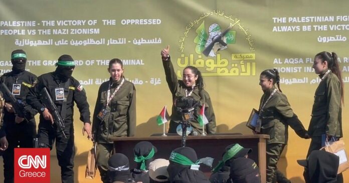 Προηγουμένως, οι τέσσερις γυναίκες ανέβηκαν σε μια σκηνή που είχε στήσει η Χαμάς ήταν ντυμένες με στρατιωτικές στολές και κρατούσαν «σακούλες δώρων» που τους έδωσε η ισλαμιστική οργάνωση.