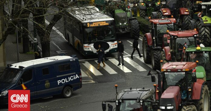 Στην Ισπανία οι αγρότες διαδηλώνουν, φορώντας κίτρινα γιλέκα σε 8 αυτόνομες κοινότητες κλείνοντας και κεντρικές οδικές αρτηρίες με τα τρακτέρ τους, διαμαρτυρόμενοι για τα εκτοξευόμενα κόστη, τη γραφειοκρατία και τον φθηνό ανταγωνισμό από χώρες εκτός Ευρωπαϊκής Ένωσης. Σε αρκετές περιπτώσεις παρατηρήθηκαν σκηνές έντασης μεταξύ διαδηλωτών και αστυνομίας.