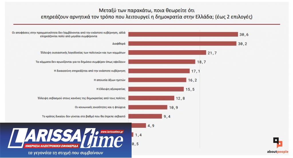 -το ότι οι αποφάσεις των κυβερνήσεων επηρεάζονται πολύ από τα μεγάλα συμφέροντα (30,6%),