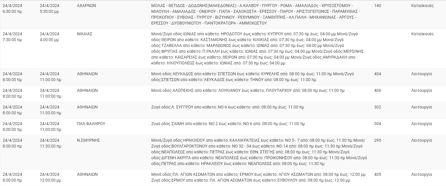 Σε ποιες περιοχές της Αττικής θα γίνουν διακοπές ρεύματος σήμερα (24/4)