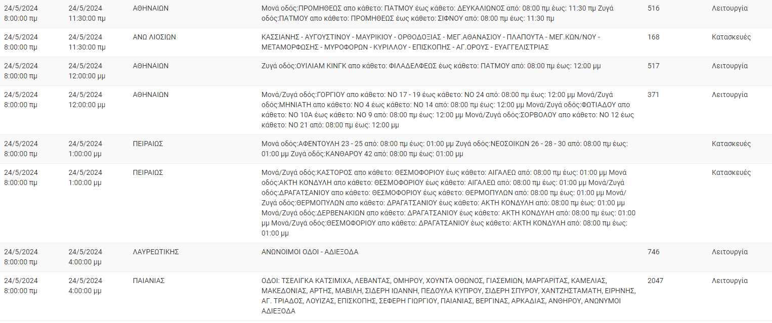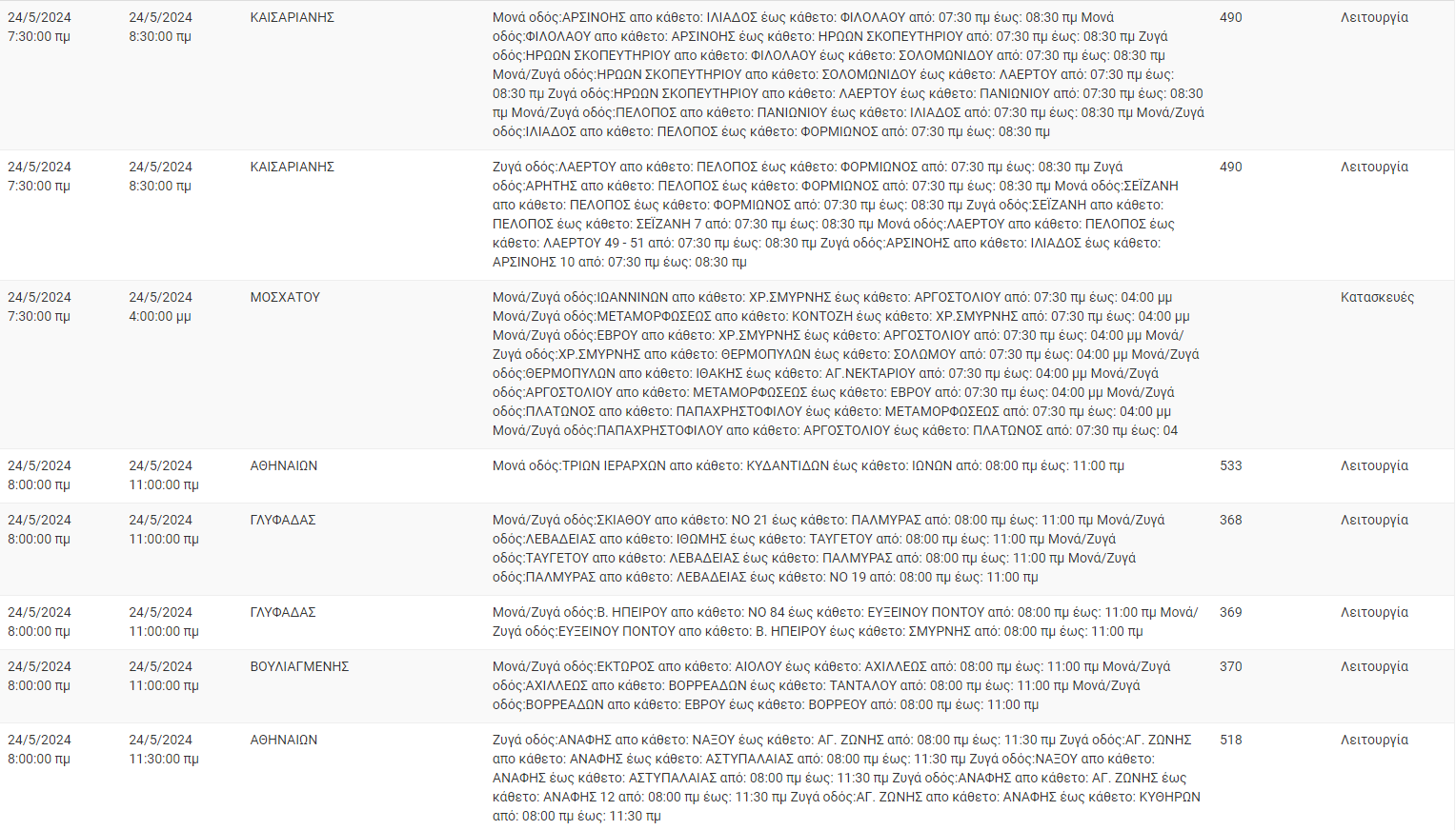 Σε ποιες περιοχές της Αττικής θα γίνουν διακοπές ρεύματος σήμερα (24/5)