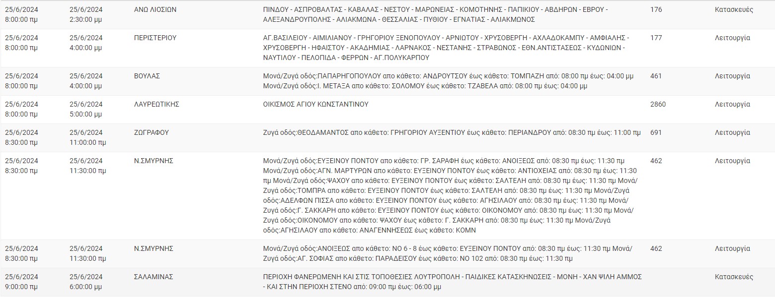 Σε ποιες περιοχές της Αττικής θα γίνουν διακοπές ρεύματος σήμερα (25/6)