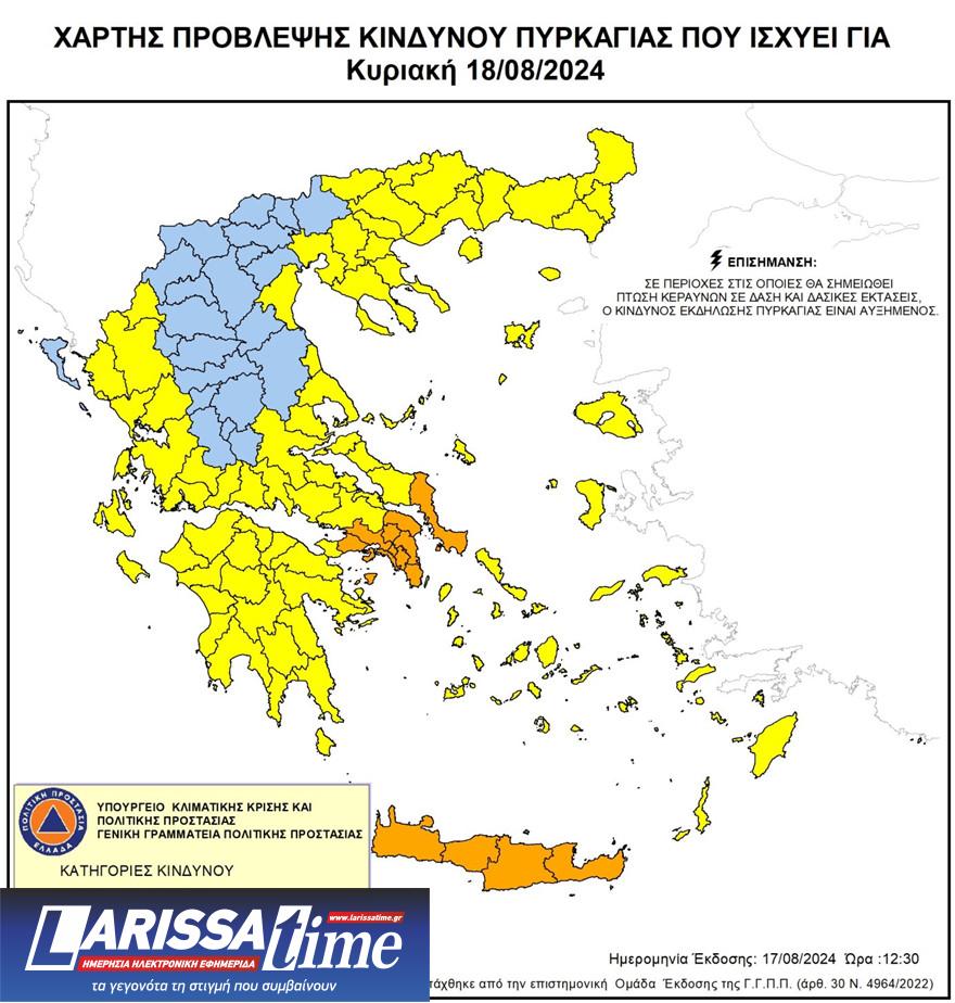 ⚠️ Χάρτης Πρόβλεψης Κινδύνου 🔥 για αύριο Κυριακή 18/08: