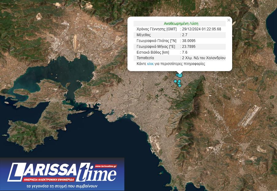 Ο μεγαλύτερος σεισμός μεγέθους 2,7 Ρίχτερ στο Χαλάνδρι με εστιακό βάθος 7,6 χιλιόμετρα σημειώθηκε στις 03:22 π.μ. σύμφωνα με το Γεωδυναμικό Ινστιτούτο.