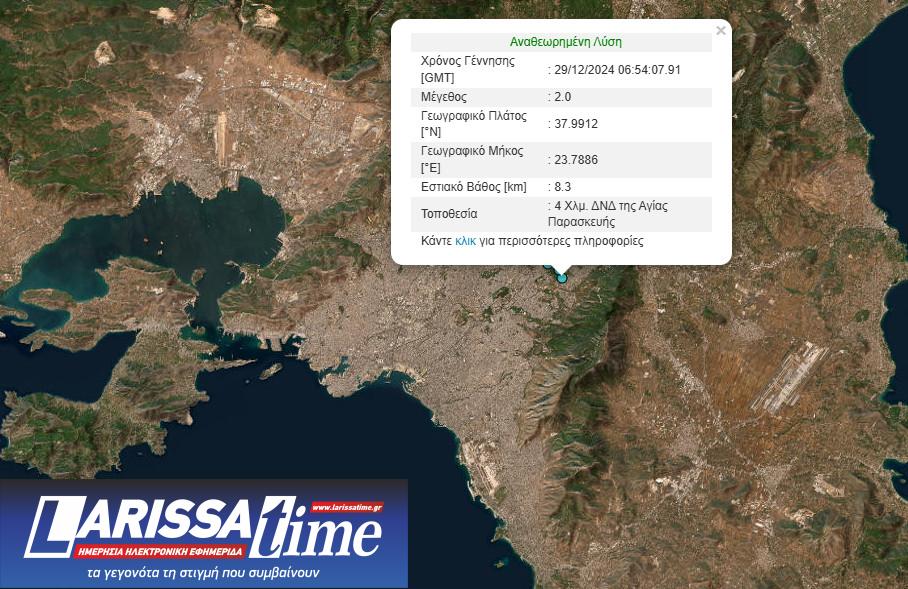 Αφού μεσολάβησαν μικρότερης έντασης δονήσεις ένας σεισμός 2 βαθμών της κλίμακας Ρίχτερ με εστιακό βάθος 8,3 χιλιόμετρα σημειώθηκε στις 08:54πμ στα δυτικά της Αγίας Παρασκευής.