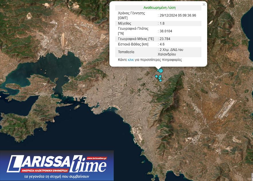 Σεισμός μεγέθους 1,8 βαθμών της κλίμακας Ρίχτερ σημειώθηκε στις 07:09 το πρωί της Κυριακής στο Χαλάνδρι