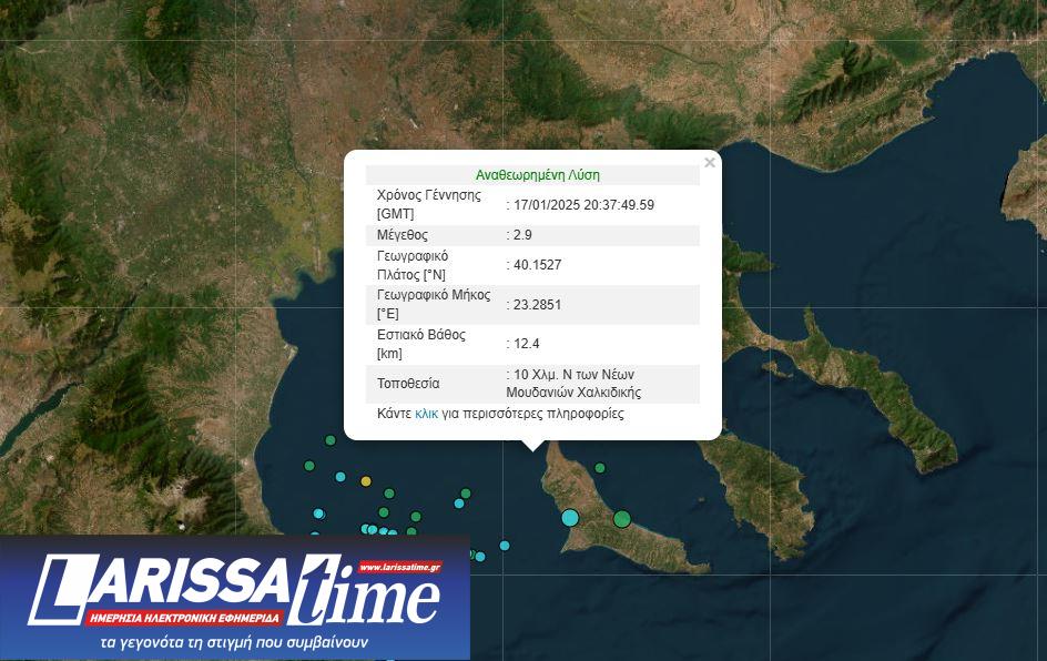 Σεισμός, μεγέθους 2,9 βαθμών στην κλίμακα Ρίχτερ, σημειώθηκε το βράδυ της Παρασκευής (17/1) στη Χαλκιδική.