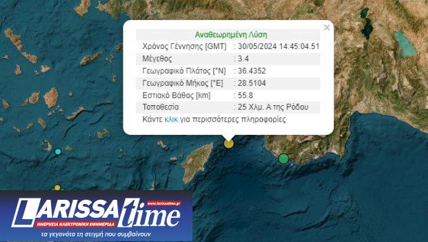 Σεισμική δόνηση 3,4 βαθμών της κλίμακας Ρίχτερ σημειώθηκε την Πέμπτη (30/5) στις 17:45, στη θαλάσσια περιοχή ανοιχτά της Ρόδου.
