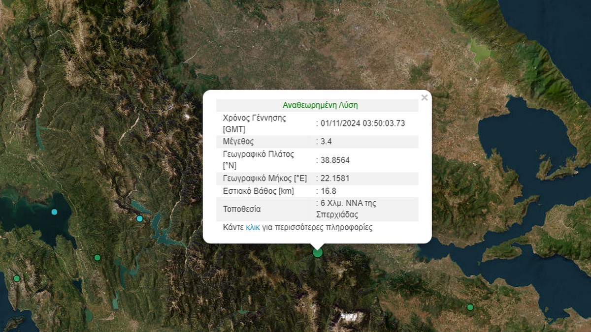 Σεισμός μεγέθους 3,4 βαθμών της κλίμακας Ρίχτερ σημειώθηκε νωρίς το πρωί της Παρασκευής στην Σπερχιάδα.