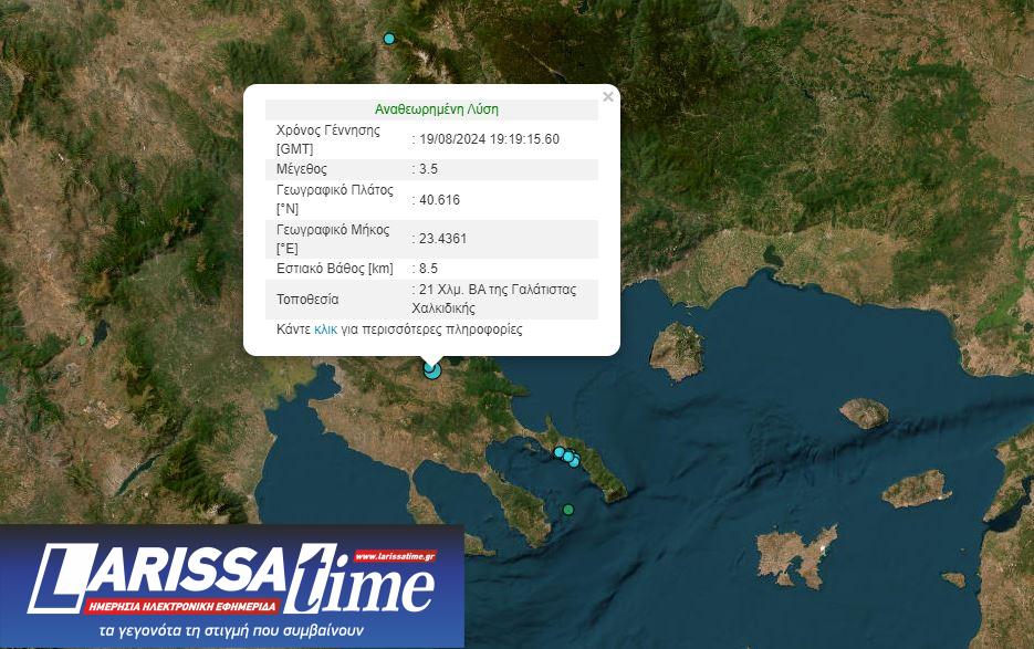 Συγκεκριμένα είχε επίκεντρο 21 χιλιόμετρα βορειοανατολικά της Γαλάτιστας Χαλκιδικής ενώ το εστιακό βάθος υπολογίστηκε στα 8,5 χιλιόμετρα